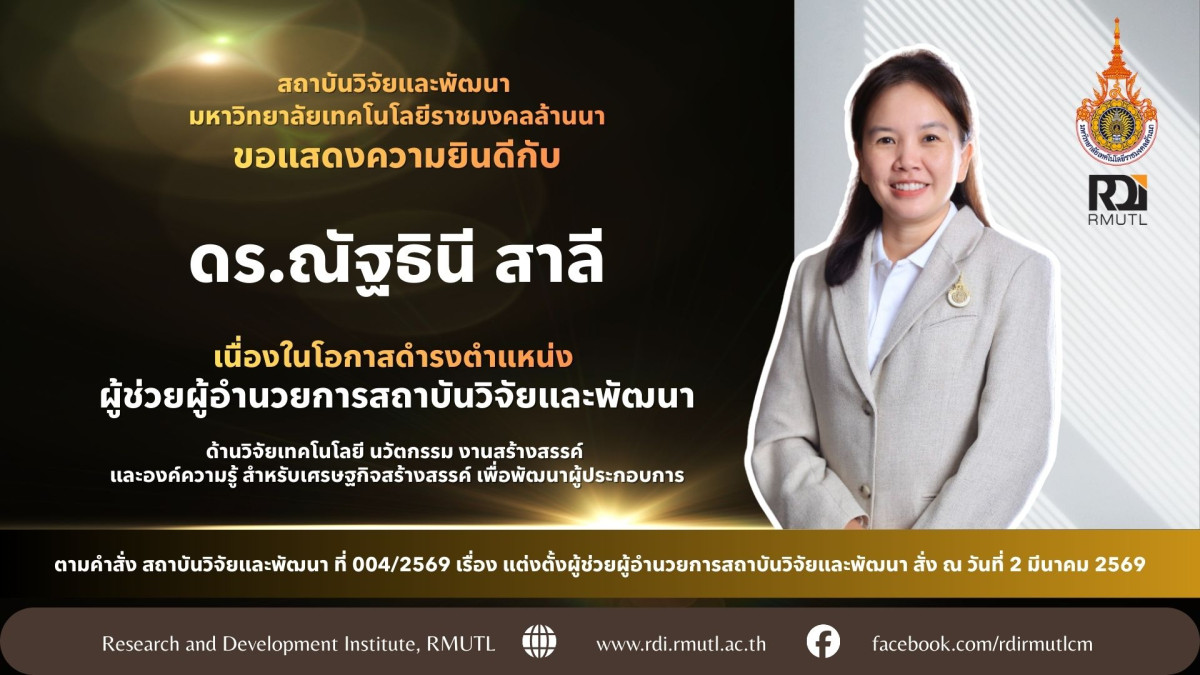 เนื่องในโอกาสที่ สถาบันวิจัยและพัฒนา มหาวิทยาลัยเทคโนโลยีราชมงคลล้านนา