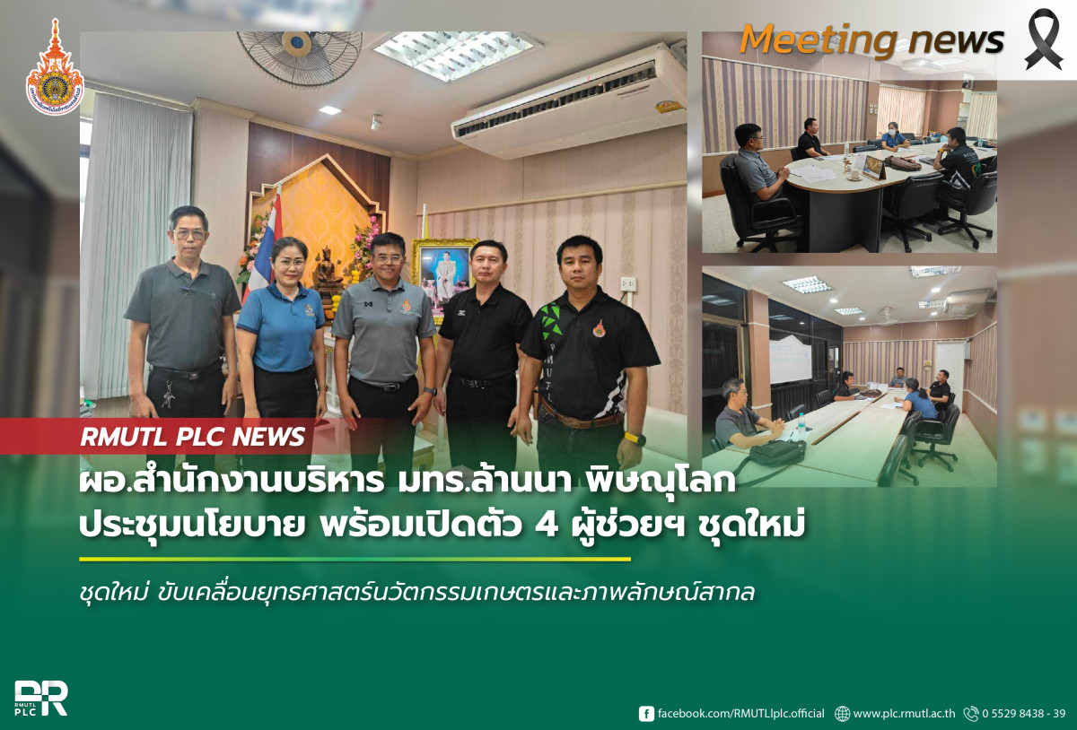 ผู้อำนวยการสำนักงานบริหาร ได้เน้นย้ำในที่ประชุมถึงความสำคัญของการทำงานเชิงรุกและการบูรณาการความเชี่ยวชาญของแต่ละฝ่ายเข้าด้วยกัน เพื่อผลักดันให้ มทร.ล้านนา พิษณุโลก เป็นกลไกสำคัญในการสร้างนวัตกรรมและผลิตบุคลากรคุณภาพสู่สังคมอย่างยั่งยืน