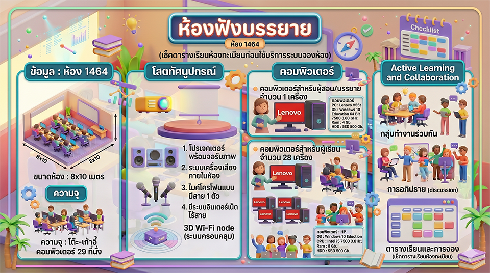 ความจุ: 29 ที่นั่ง (ชุดโต๊ะ-เก้าอี้คอมพิวเตอร์)
