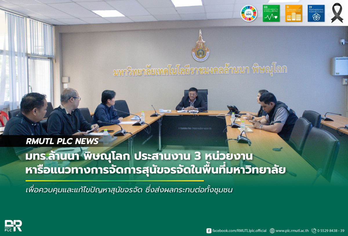 เมื่อวันที่ 6 พฤศจิกายน 2568 มหาวิทยาลัยเทคโนโลยีราชมงคลล้านนา พิษณุโลก ได้จัดการประชุมหารือแนวทางการจัดการปัญหาสุนัขจรจัดภายในพื้นที่มหาวิทยาลัย ณ ห้องประชุม 1 อาคารอำนวยการ