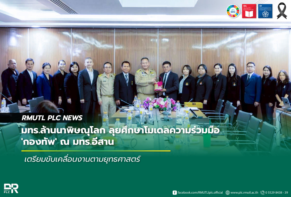 วันนี้ (10 พฤศจิกายน 2568) มหาวิทยาลัยเทคโนโลยีราชมงคลล้านนา พิษณุโลก นำโดย นายบุญฤทธิ์ สโมสร ผู้อำนวยการสำนักงานบริหาร พร้อมด้วยคณะผู้บริหารและบุคลากร ได้เดินทางเข้าศึกษาดูงานและหารือแนวทางการดำเนินงานจัดการศึกษา ภายใต้บันทึกข้อตกลงความร่วมมือทางวิชาการกับ กองทัพฯ ณ มหาวิทยาลัยเทคโนโลยีราชมงคลอีสาน (ศูนย์กลางนครราชสีมา)