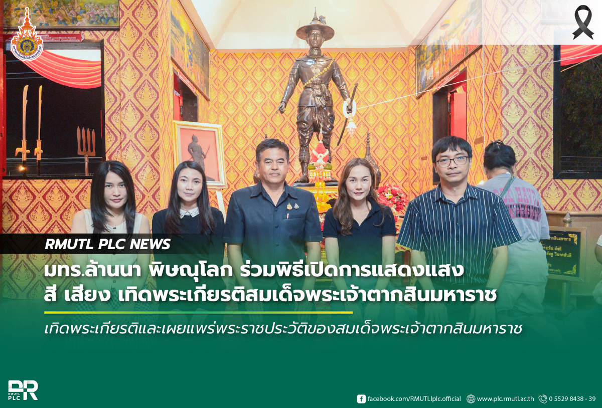 วันที่ 28 ธันวาคม 2568 เวลา 18.00 น. ณ วัดปากพิงตะวันตก ตำบลงิ้วงาม อำเภอเมืองพิษณุโลก จังหวัดพิษณุโลก นายบุญฤทธิ์ สโมสร ผู้อำนวยการสำนักงานบริหาร มหาวิทยาลัยเทคโนโลยีราชมงคลล้านนา พิษณุโลก พร้อมด้วยคณาจารย์และบุคลากร เข้าร่วมพิธีเปิดการแสดงแสง สี เสียง เทิดพระเกียรติสมเด็จพระเจ้าตากสินมหาราช โดยมีนายบุญเหลือ บารมี รองผู้ว่าราชการจังหวัดพิษณุโลก เป็นประธานในพิธี