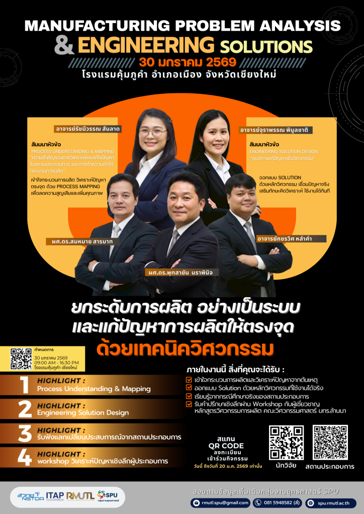 กลุ่มงานยุทธศาสตร์ SPU ขอเชิญชวนนักวิจัย อาจารย์ และผู้เชี่ยวชาญ มทร.ล้านนา