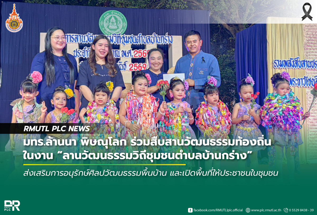 วันที่ 2 กุมภาพันธ์ 2569 เวลา 17.00 น. นายบุญฤทธิ์ สโมสร ผู้อำนวยการสำนักงานบริหาร มหาวิทยาลัยเทคโนโลยีราชมงคลล้านนา พิษณุโลก พร้อมด้วยบุคลากรจากหน่วยงาน เข้าร่วมกิจกรรม โครงการลานวัฒนธรรมวิถีชุมชนตำบลบ้านกร่าง ณ ลานกิจกรรมวัดพระขาวไชยสิทธิ์ ตำบลบ้านกร่าง อำเภอเมืองพิษณุโลก จังหวัดพิษณุโลก