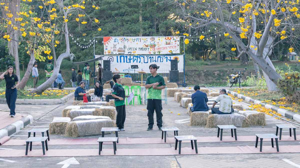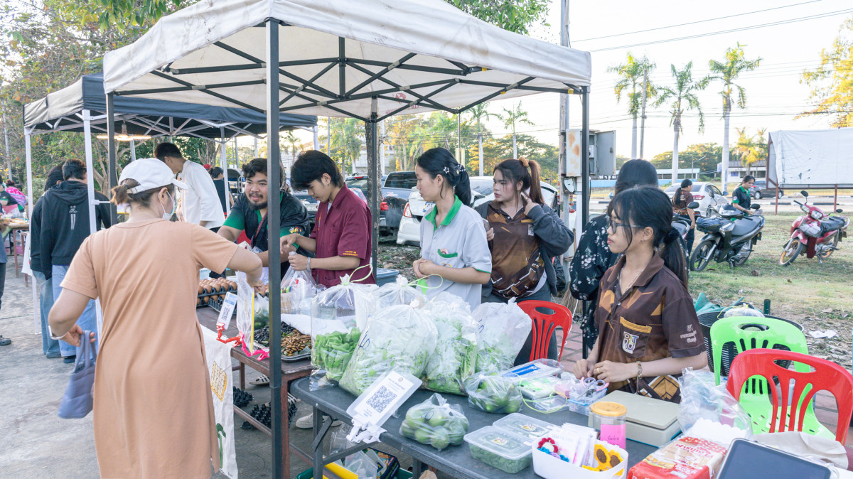 ภายในงานวันเปิดตลาด บรรยากาศเป็นไปอย่างคึกคัก มีบุคลากร นักศึกษา และประชาชนทั่วไปให้ความสนใจเลือกซื้อสินค้าเป็นจำนวนมาก พร้อมทั้งมีการจัดแสดงผลงานด้านเกษตรกรรมและการสาธิตความรู้ เช่น การเพาะเห็ด การปลูกผักในโรงเรือน และการแปรรูปผลผลิตทางการเกษตร เพื่อเผยแพร่องค์ความรู้สู่ชุมชน