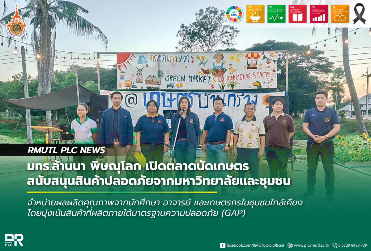 เมื่อวันพุธที่ 4 กุมภาพันธ์ 2569 คณะวิทยาศาสตร์และเทคโนโลยีการเกษตร มหาวิทยาลัยเทคโนโลยีราชมงคลล้านนา พิษณุโลก ได้จัดพิธีเปิดงาน “ตลาดนัดเกษตร มทร.ล้านนา พิษณุโลก” ณ บริเวณหน้าอาคารปฏิบัติการความเชี่ยวชาญเกษตรปลอดภัย โดยมี ผู้ช่วยศาสตราจารย์ ดร.ปิยมาสฐ์ ตัฒฑ์เจริญรัตน์ คณบดีคณะวิทยาศาสตร์และเทคโนโลยีการเกษตร ให้เกียรติเป็นประธานในพิธี
