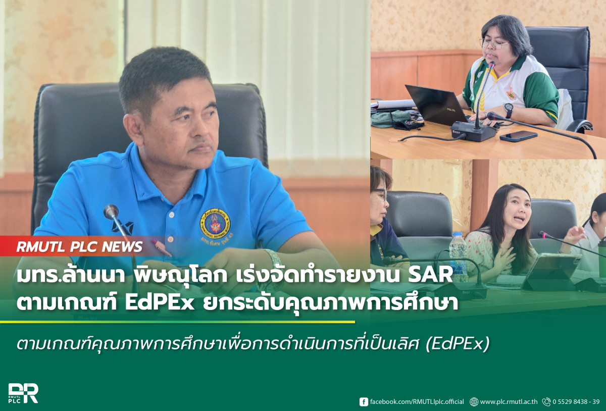 2 ตุลาคม 2568 มหาวิทยาลัยเทคโนโลยีราชมงคลล้านนา พิษณุโลก เดินหน้ายกระดับคุณภาพการศึกษา จัดการประชุมเพื่อจัดทำรายงานการประเมินตนเอง (SAR) ตามเกณฑ์คุณภาพการศึกษาเพื่อการดำเนินการที่เป็นเลิศ (EdPEx) ณ ห้องประชุม 1423 อาคารวิทยบริการและเทคโนโลยีสารสนเทศ