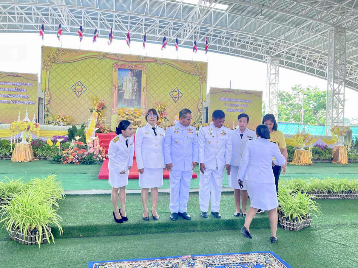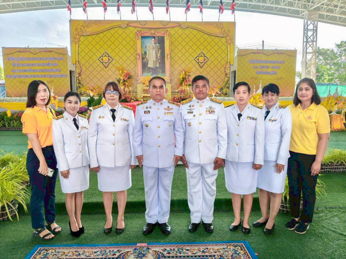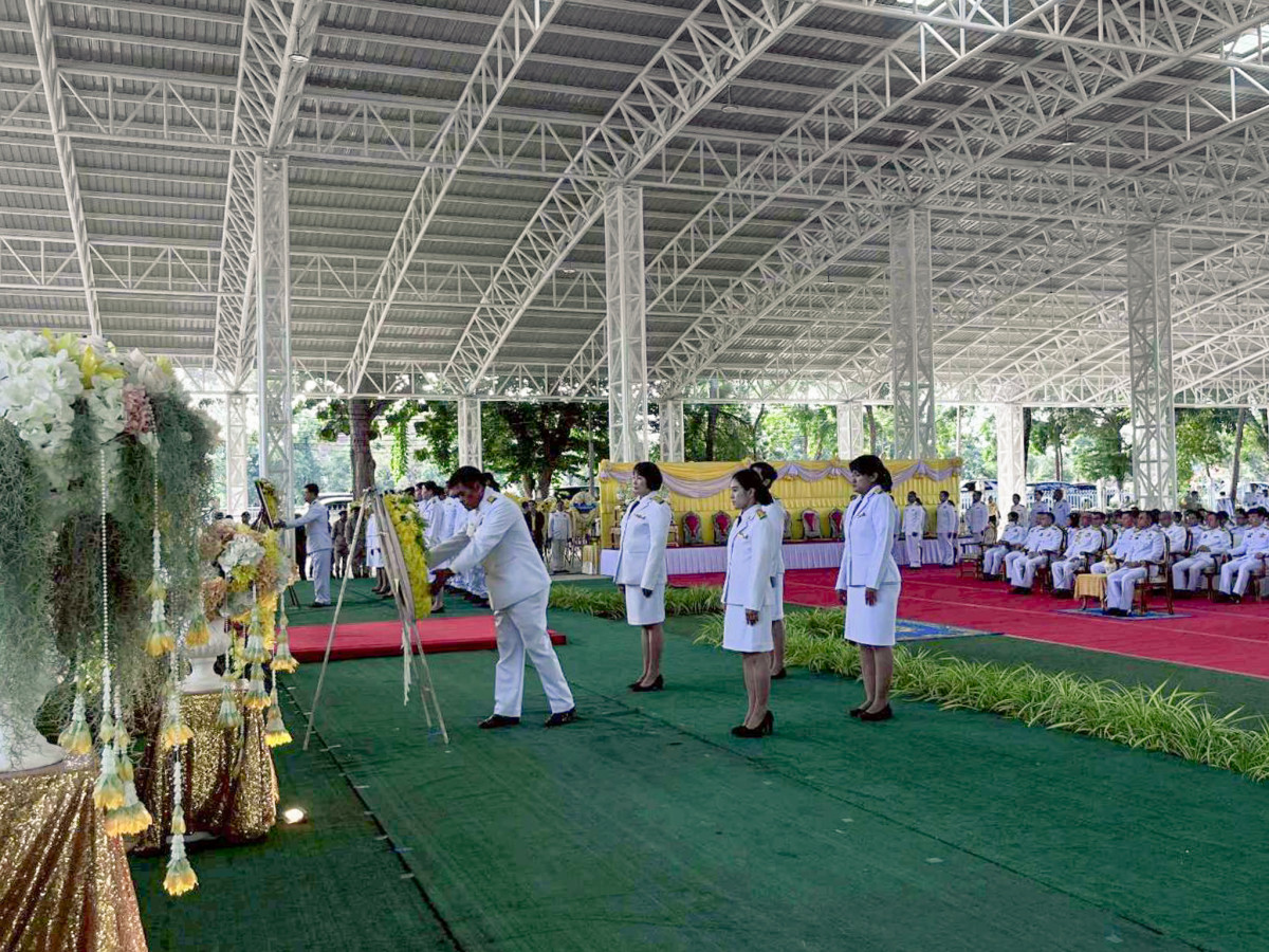 ภายหลังเสร็จสิ้นพิธีทำบุญตักบาตร ได้จัดให้มี พิธีวางพวงมาลาและถวายบังคม เบื้องหน้าพระบรมฉายาลักษณ์ โดยมีหัวหน้าส่วนราชการ หน่วยงานรัฐวิสาหกิจ องค์กรปกครองส่วนท้องถิ่น ภาคเอกชน และประชาชน เข้าร่วมอย่างพร้อมเพรียง เพื่อแสดงความจงรักภักดีและน้อมสำนึกในพระมหากรุณาธิคุณอันหาที่สุดมิได้