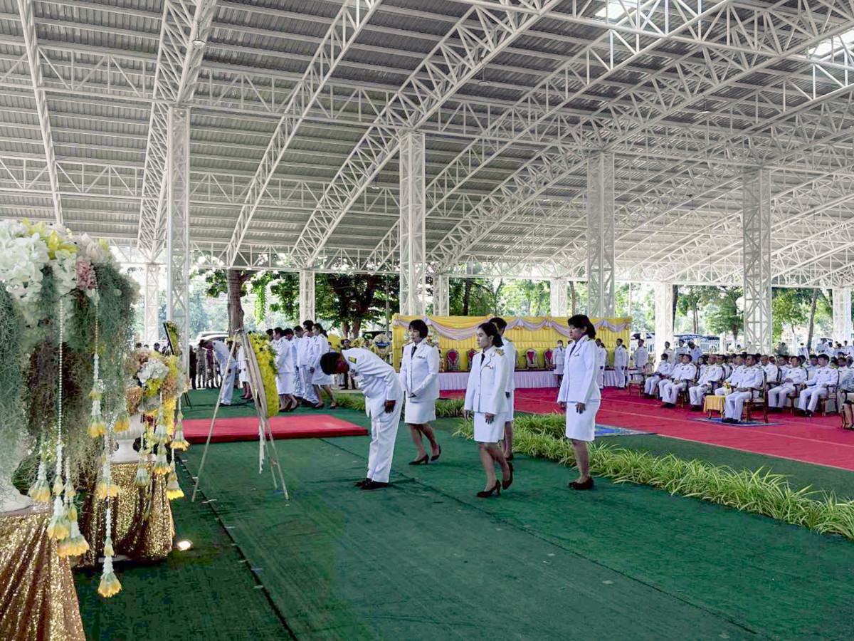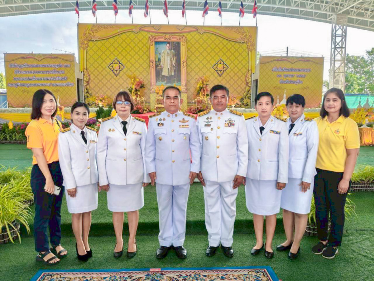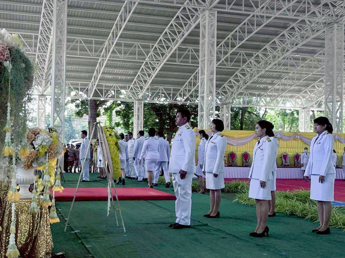 ภายหลังเสร็จสิ้นพิธีทำบุญตักบาตร ได้จัดให้มี พิธีวางพวงมาลาและถวายบังคม เบื้องหน้าพระบรมฉายาลักษณ์ โดยมีหัวหน้าส่วนราชการ หน่วยงานรัฐวิสาหกิจ องค์กรปกครองส่วนท้องถิ่น ภาคเอกชน และประชาชน เข้าร่วมอย่างพร้อมเพรียง เพื่อแสดงความจงรักภักดีและน้อมสำนึกในพระมหากรุณาธิคุณอันหาที่สุดมิได้