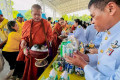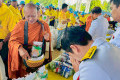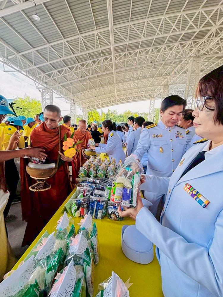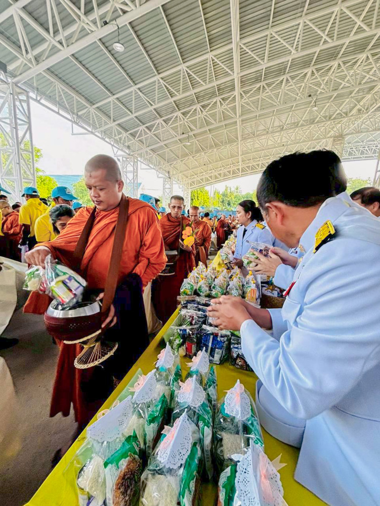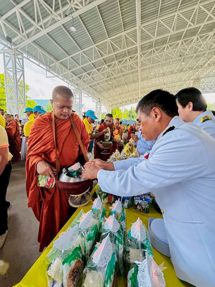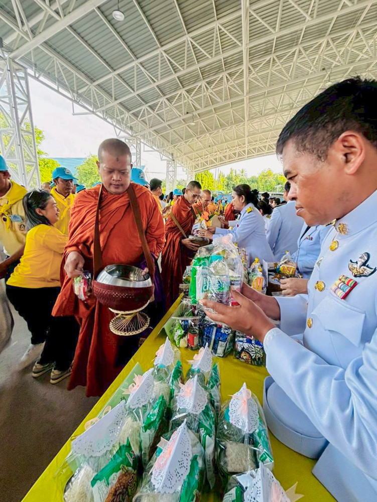 จากนั้น เป็น พิธีทำบุญตักบาตรถวายพระราชกุศล โดยมีพระสงฆ์จำนวน 89 รูป เดินรับบิณฑบาตจากหัวหน้าส่วนราชการ ข้าราชการ และประชาชนที่มาร่วมในพิธี