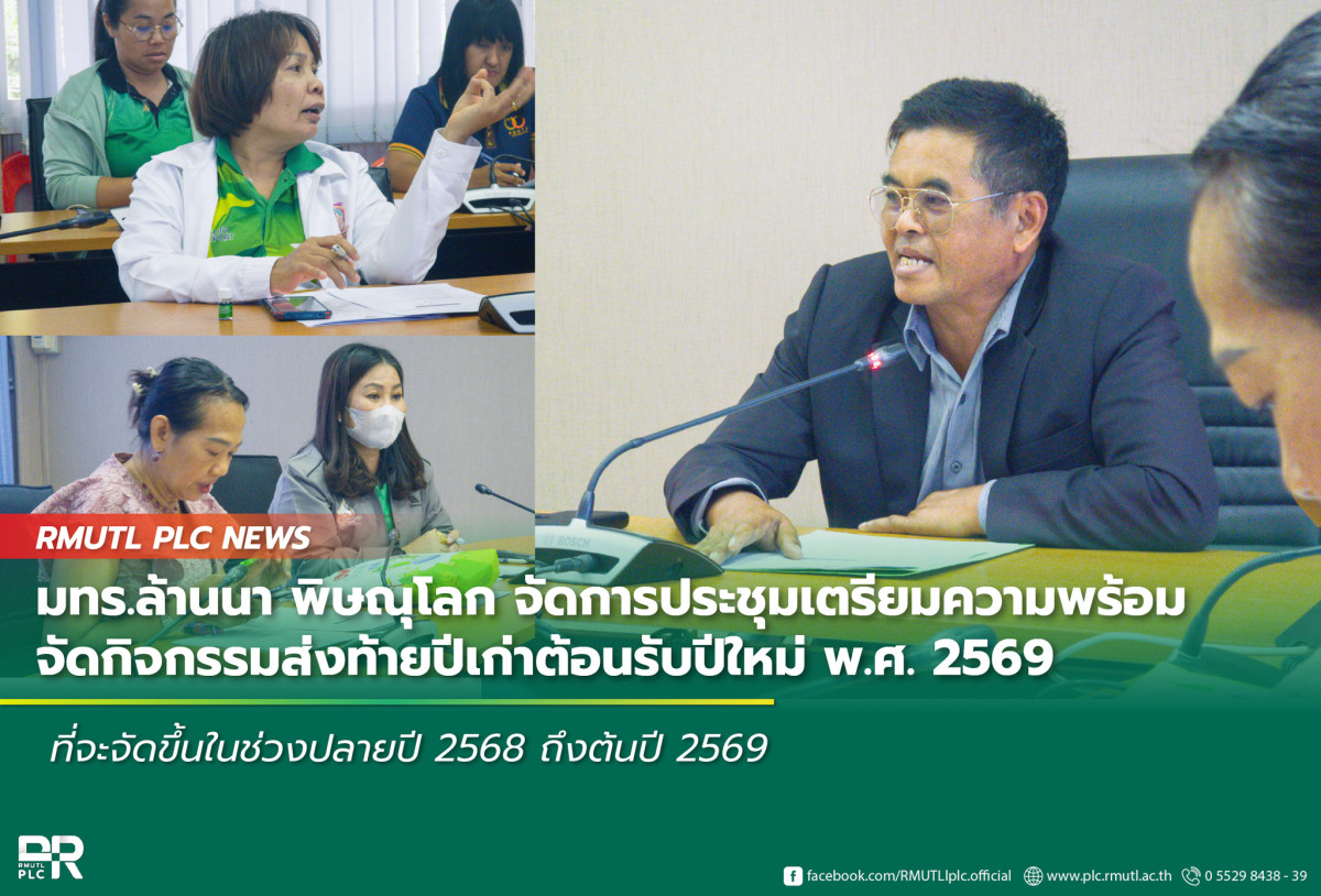 เมื่อวันที่ 22 ตุลาคม 2568 เวลา 15.00 น. ณ ห้องประชุม 1 อาคารอำนวยการ นายบุญฤทธิ์ สโมสร ผู้อำนวยการสำนักงานบริหาร มหาวิทยาลัยเทคโนโลยีราชมงคลล้านนา พิษณุโลก เป็นประธานในการประชุมร่วมกับคณาจารย์และบุคลากร เพื่อหารือและวางแผนการจัดกิจกรรมส่งท้ายปีเก่าต้อนรับปีใหม่ ที่จะจัดขึ้นในช่วงปลายปี 2568 ถึงต้นปี 2569 เพื่อให้กิจกรรมเป็นไปด้วยความเรียบร้อยและสร้างความประทับใจแก่ผู้เข้าร่วมงาน