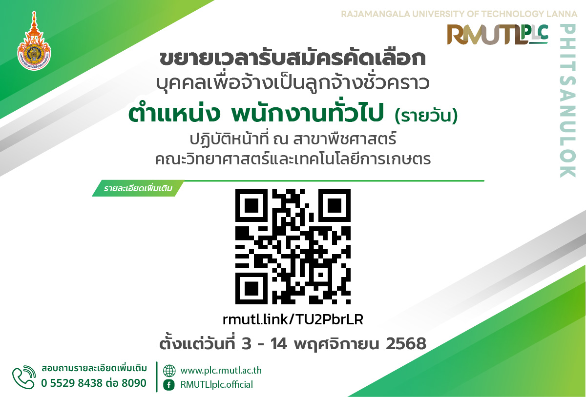 รายละเอียดเพิ่มเติม : rmutl.link/TU2PbrLR
