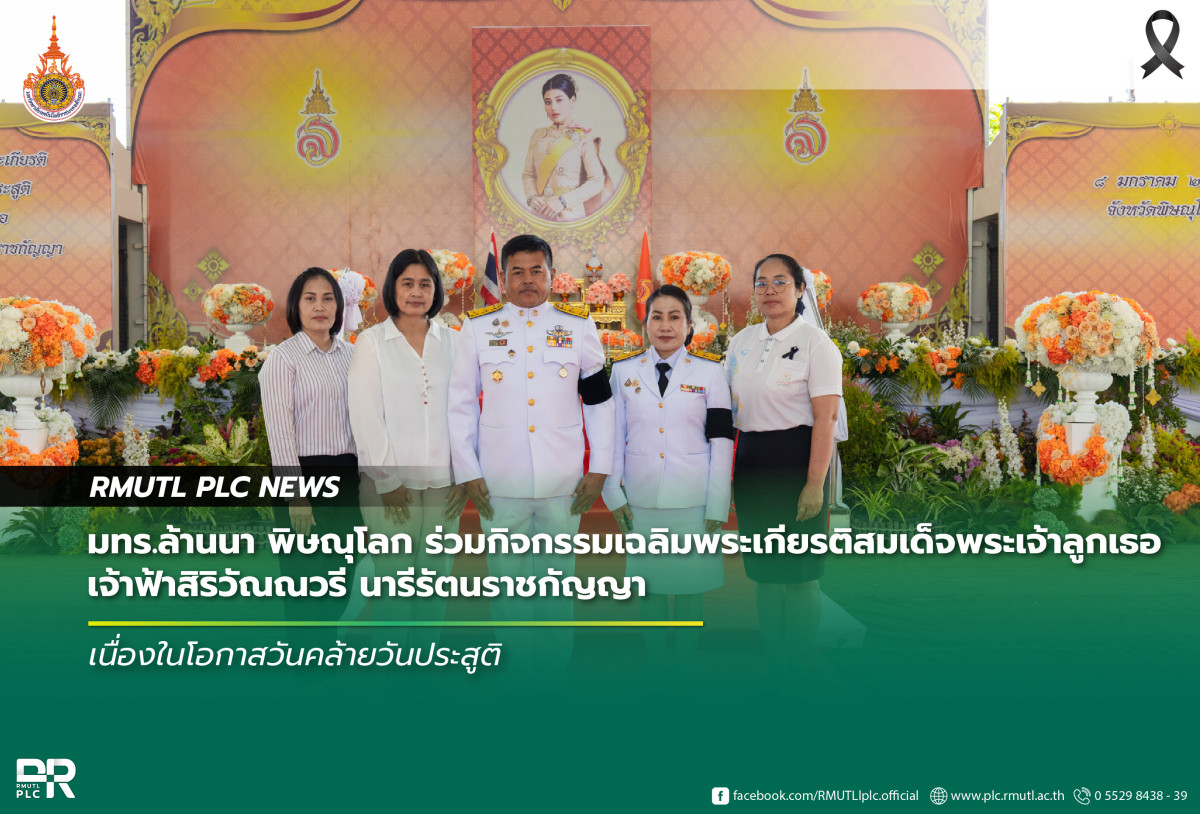 วันนี้ (8 มกราคม 2569) เวลา 07.00 น. มหาวิทยาลัยเทคโนโลยีราชมงคลล้านนา พิษณุโลก นำโดย นายบุญฤทธิ์ สโมสร ผู้อำนวยการสำนักงานบริหาร พร้อมด้วยบุคลากรของมหาวิทยาลัย เข้าร่วมกิจกรรมเฉลิมพระเกียรติ สมเด็จพระเจ้าลูกเธอ เจ้าฟ้าสิริวัณณวรี นารีรัตนราชกัญญา เนื่องในโอกาสวันคล้ายวันประสูติ โดยมี นายเกียรติศักดิ์ ตรงศิริ ผู้ว่าราชการจังหวัดพิษณุโลก เป็นประธานในพิธี ณ โดมเวทีกลาง ศาลากลางจังหวัดพิษณุโลก