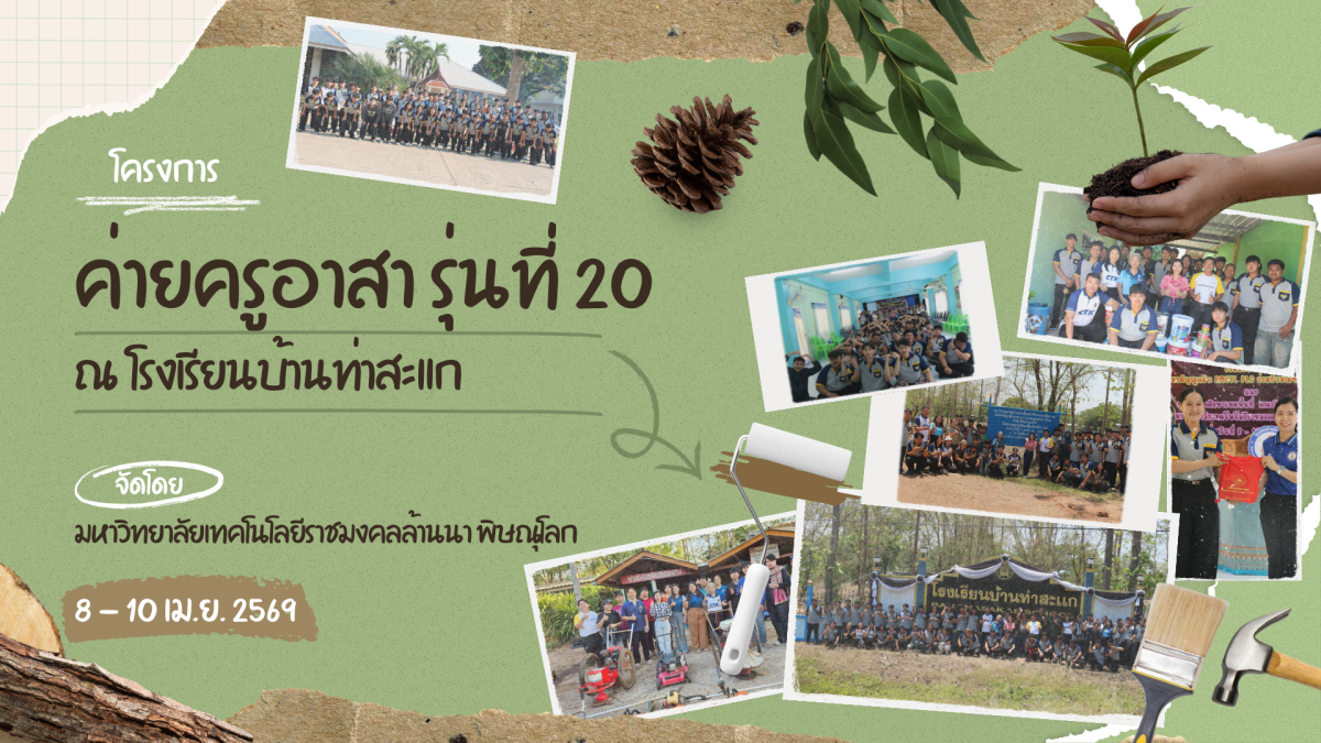 คณะวิศวกรรมศาสตร์ มหาวิทยาลัยเทคโนโลยีราชมงคลล้านนา พิษณุโลก จัดโครงการ “ค่ายครูอาสา รุ่นที่ 20” ระหว่างวันที่ 8–10 เมษายน 2569 ณ โรงเรียนบ้านท่าสะแก โดยมีคณาจารย์และนักศึกษาจากหลักสูตรครุศาสตร์อุตสาหกรรมบัณฑิต สาขาวิชาวิศวกรรมเครื่องกล วิศวกรรมไฟฟ้า และวิศวกรรมอุตสาหการ เข้าร่วมดำเนินกิจกรรมอย่างเข้มแข็ง